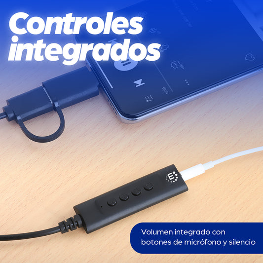 Cable adaptador auxiliar de audio estéreo 2 en 1 USB-C y USB-A a 3.5 mm