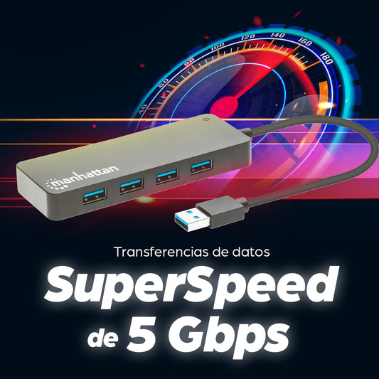 Hub de 4 puertos USB-A 3.2 Gen 1 con conector adaptable de USB-A a USB-C