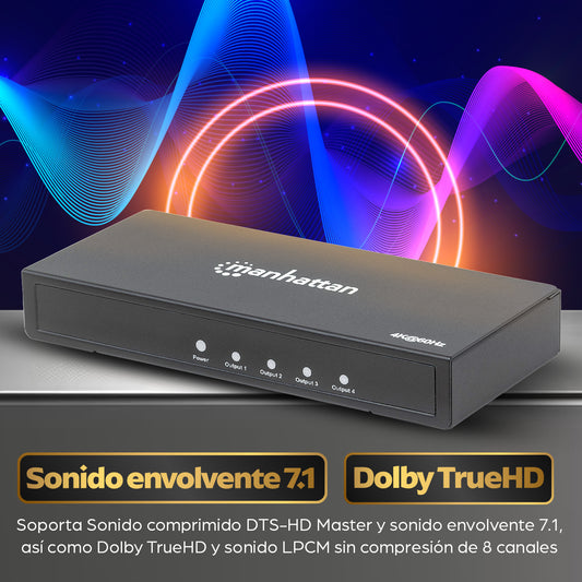 Splitter HDMI con 4 puertos 4K y reductor de escala