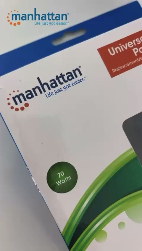 Las fuentes de alimentación suelen olvidarse, perderse o estropearse. Este adaptador de corriente Manhattan, con siete niveles de salida ajustables y 70 vatios, proporciona una única y cómoda fuente de CA para casi cualquier dispositivo móvil. Las puntas de enchufe de CC convertibles garantizan una polarización y un ajuste adecuados.