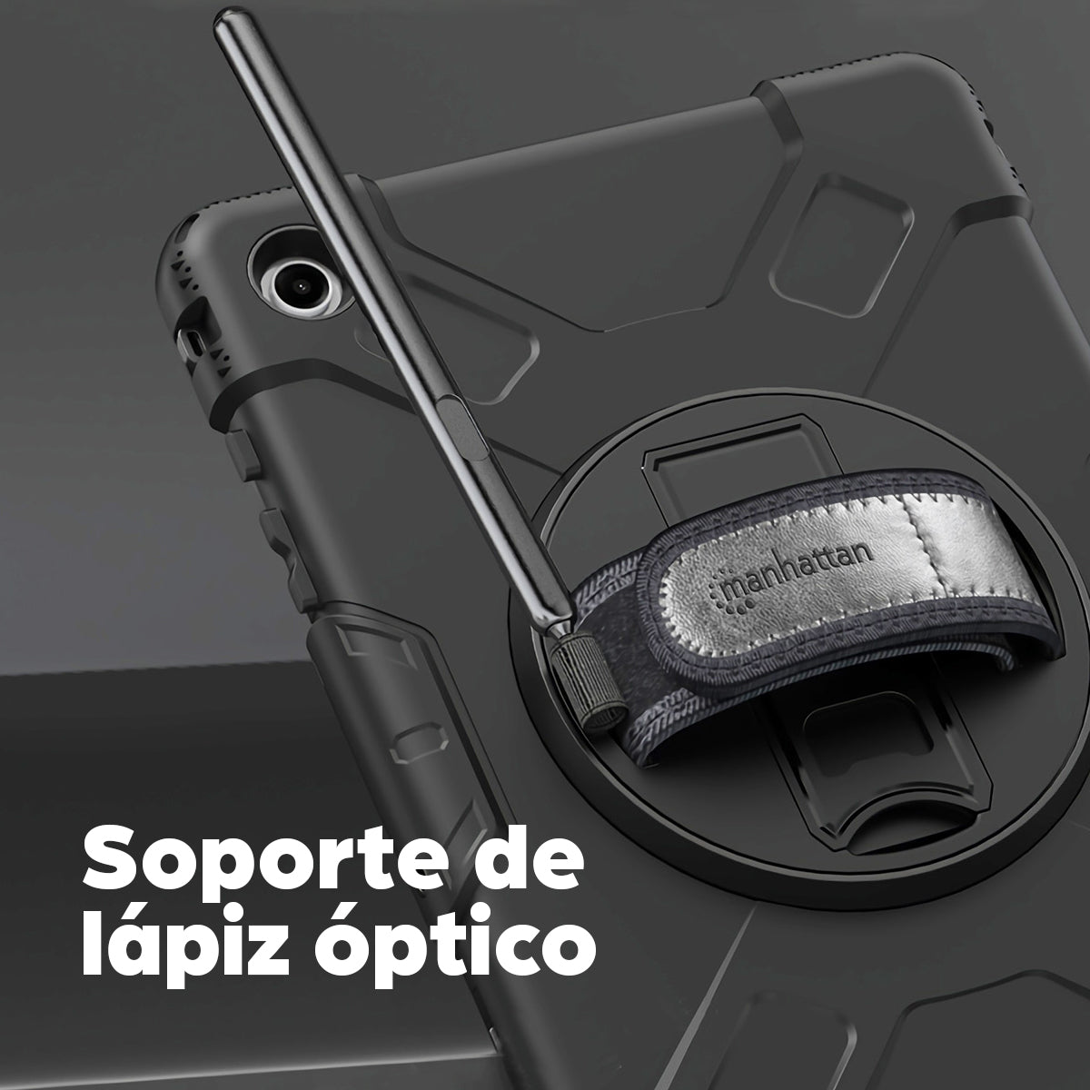Funda rígida para Samsung Galaxy Tab A9+ de 11" con soporte giratorio, correa para sostener con mayor comodidad la tablet en la mano y correa para el hombro para maximizar la seguridad en traslados.