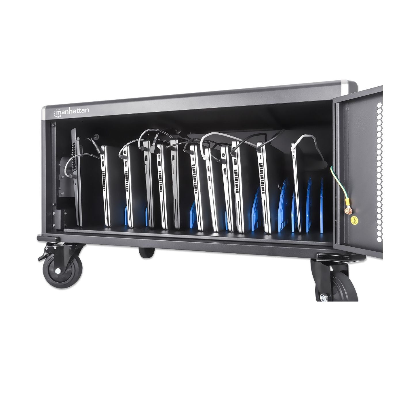 Cargar, almacenar y proteger dispositivos portátiles es fácil con el fiable carro de carga de CA de 20 bahías Manhattan. Es la solución ideal para laptops y otros dispositivos de hasta 15.6 pulgadas en escuelas, restaurantes, gimnasios, consultorios médicos, universidades, hoteles, oficinas y más, para que puedas atender de manera eficiente a tus estudiantes, invitados, pacientes, clientes y clientes.