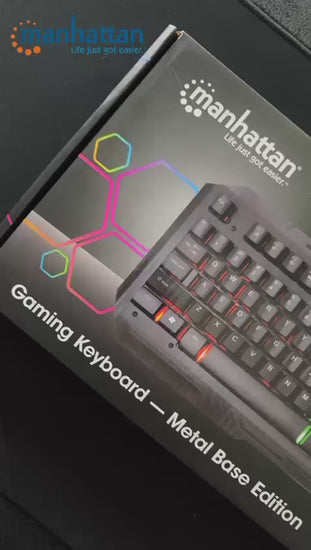 Este teclado para juegos presenta un diseño inteligente y robusto para garantizar la durabilidad y comodidad, mientras que cada tecla ofrece pulsaciones de teclas silenciosas y receptivas. Ya sea que estés jugando en una intensa sesión de juego, navegando por hojas de cálculo extensas o ingresando datos numéricos, el teclado te proporciona una eficiencia silenciosa en casi cualquier entorno. La retroiluminación LED multicolor se puede mantener pulsante o fija lo que la hace visualmente agradable y útil en entornos con poca luz. Cuenta con un soporte para celular: coloca tu smartphone frente al teclado gamer para visualizar chats, apps o streaming mientras juegas o trabajas. Actualizate o complementa tu computadora Windows®, con este teclado Gaming de Manhattan ya que es el periférico ideal y esencial en el campo de juego de cualquier jugador Gaming.